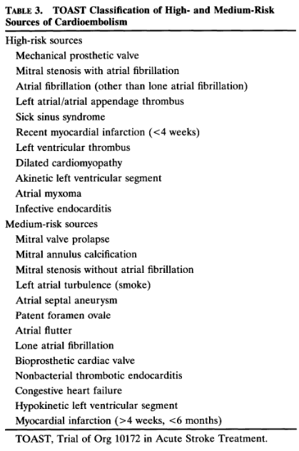 Trial of Org 10172 in Acute Stroke Treatment (TOAST)를 통해 탄생하여 TOAST라고 부른다.